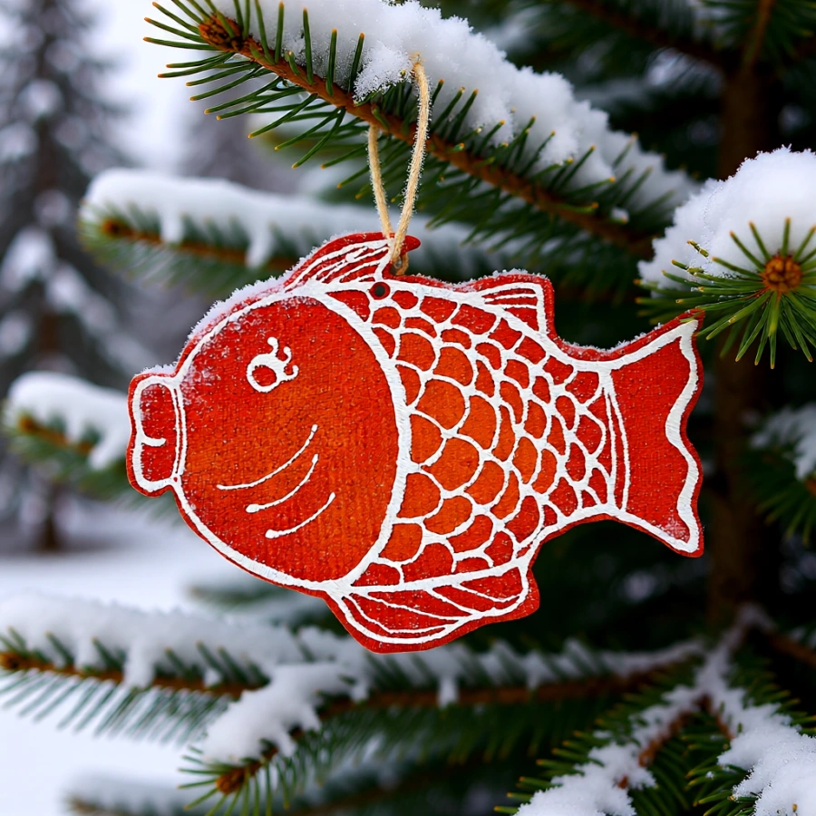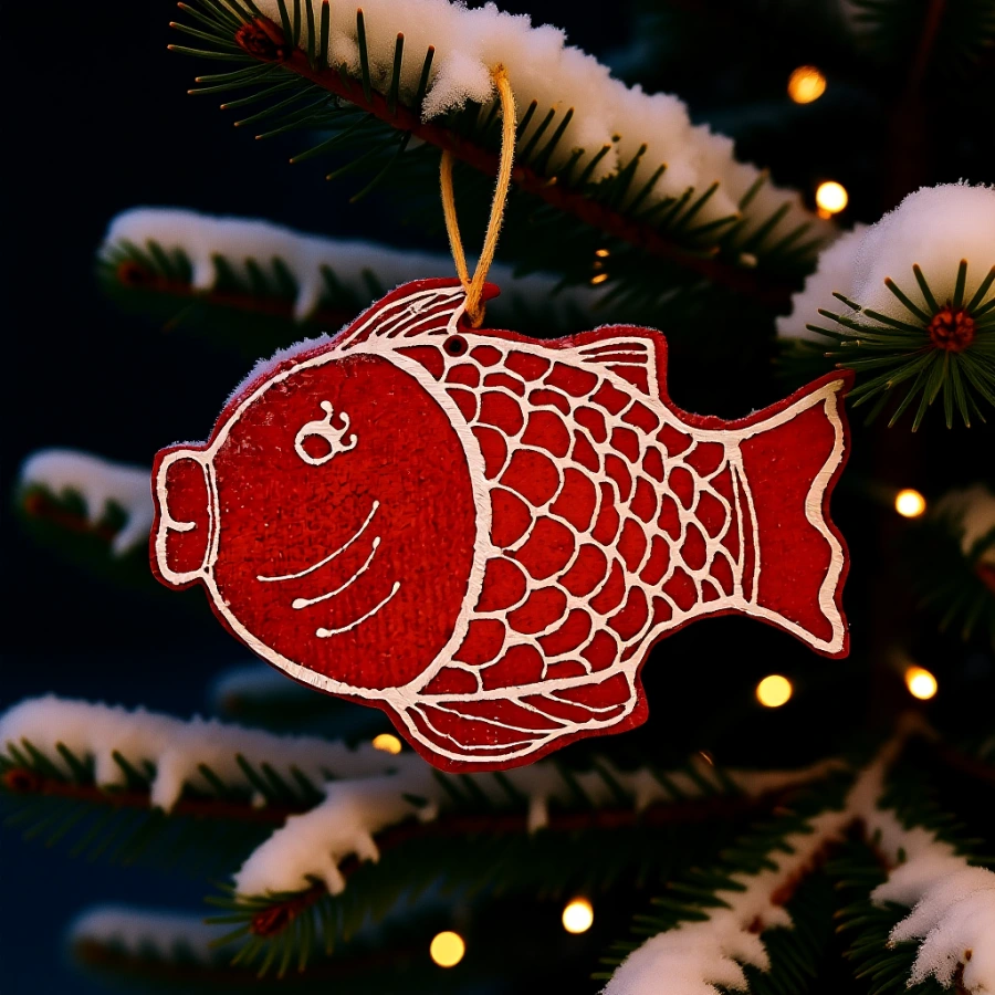 ryba bola aj tradičným vianočným pokrmom, preto symbolicky “patrila na stromček” ako pripomienka hojnosti sviatočného stola